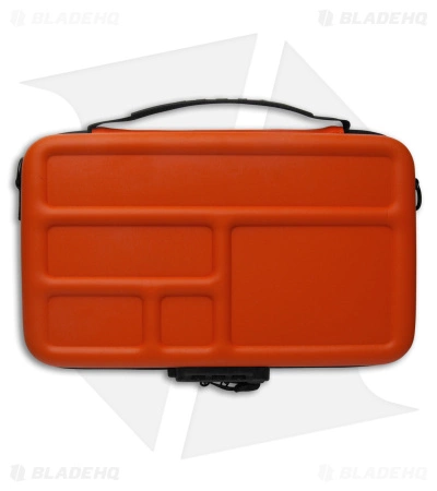 This smooth orange case is the perfect answer to your knife storage problem. BRS (Blade Runner Systems) has come out with a way to store all your knives in style and safety. This Vault case features a locking feature that allows you to set the combination and lock the zippers tight. As well as a modular interior that will allow you to carry lots of knives of varying shapes and sizes. Included is a shoulder strap for hands-free transportation. Grab yours today and give your knives a place to stay!