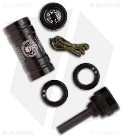 The ESEE Advanced Fire Kit is a “last-ditch” fire starter and mini survival kit with a modular design. The watertight capsule has plenty of storage space for tinder, fishhooks, line and other essential survival tools (user supplied). One cap has a 20mm button compass with visible light reflective tape on the reverse side. The other cap is the ferrocerium flint rod with infrared (IR) reflective tape (Glint Tape) on the end. The Advance Fire Kit includes extra rings so the compass and ferro rod can be used as stand alone units. The modular design makes it possible to attach two capsules together (extra capsule and coupler are accessories that are sold separately). Measures 3.70″ x 1.15″ (approx.) and weighs 4 oz.
