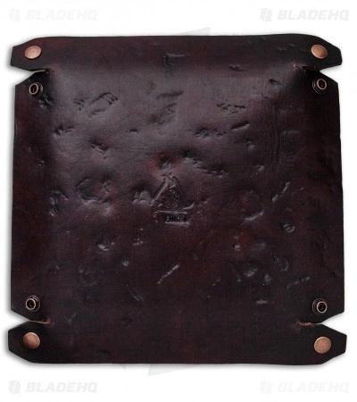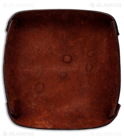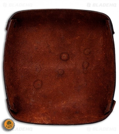 Valet trays offer a stylish and functional way to store your keys, knives and EDC pocket tools at the end of the day. This large leather tray from Fire Hall Knife and Leather features an antique dye with brass snap clasps. These trays are handmade, and will develop a unique character as the leather is aged. Item can lay flat, or snap together on the corners to make a useful tray. Never misplace your important items again with a valet tray from Fire Hall Knife and Leather.