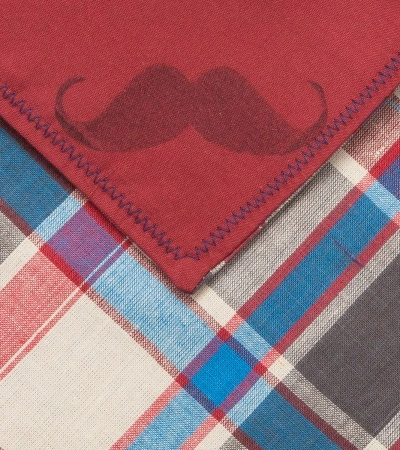 Handkerchief pictured is folded to reveal the muslin backing with ‘stache.
