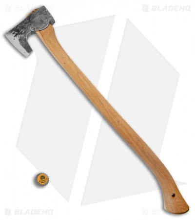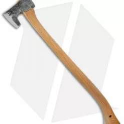 This 32″ Hoffman Blacksmithing Full Size Axe features a hand forged 4142 steel head with a natural finish, a bearded head, and a polished cutting edge. Its resilient straight grained ash handle is hand carved and sanded from kiln dried lumber for optimum comfort during use. This full size monster has the size and heft needed for any difficult chopping job. With a flawless fit and finish, and a build made to take a serious beating, you’ll be hard pressed to find a better axe anywhere.