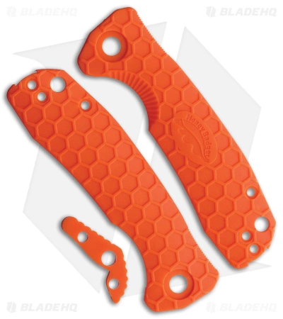 - Quality orange FRN honeycomb patterned scales and backspacer for a small Honey Badger knife.