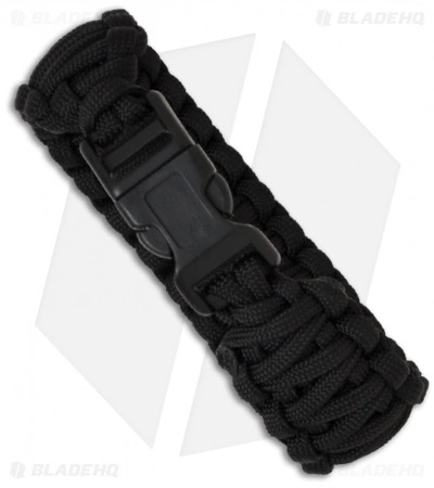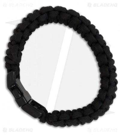 This easy to carry survival bracelet from Knotty Boys packs roughly one foot of 550 paracord per inch for when times get rough. Includes a 5/8″ buckle snap closure. Double tied and one inch wide.