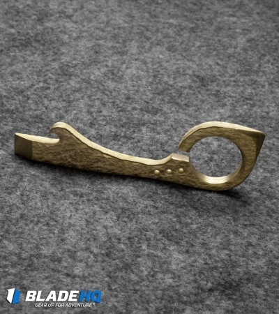 The LCKT BeerRambit is a powerful bottle opener pocket tool that has a karambit-influenced finger ring that can be utilized for self-defense applications. In addition, the slot in the finger ring can be used as a dangler for pocket or belt loop attachment. This model features 1/4″ thick, hammered brass.