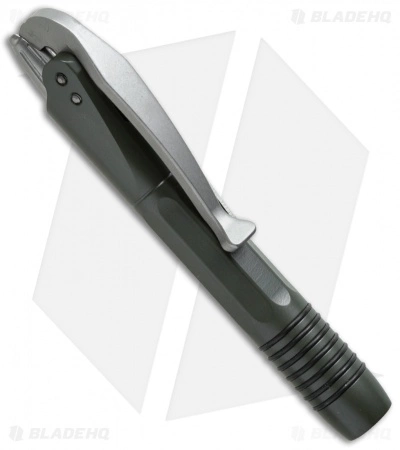 The Siphon II, like the original Siphon is a unique folding lever-action pen and a stylish writing instrument from Microtech. Pull the lever up and the pen tip is revealed. The Siphon II has a slightly longer body with o-ring grips and this model has OD green finished stainless steel construction. It measures 3.9″ with lever down and includes a pocket clip with model name, date of production, and serial number.