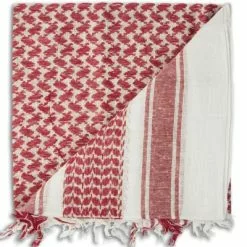 This White/Red Shemagh is made of 100% cotton and measures 44″ x 44″. The Shemagh is a traditional head wear item that is perfect for protecting eyes, nose, mouth and neck from sand and the sun. Shemaghs can also be used as a neck warmer, a hand towel and more. Shemaghs are currently used by US and British Forces in Iraq and Afghanistan.