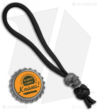 This Schmuckatelli zipper pull features a black oxide finished pewter One Eye Jack Skull Bead. Be sure to click on the pictures above for a larger, detailed look at this cool skull bead.