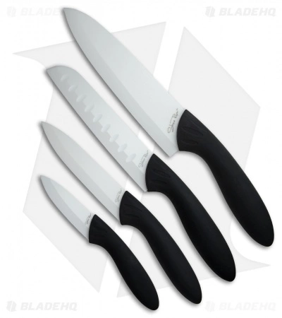 This Stone River Gear Ceramic knife set offers 4 useful kitchen knives with white blades and black rubberized handles. It includes a chef knife, utility, santoku, and a pairing knife. Ceramic blades offer a non-stick, antibacterial surface that is rust and corrosive free, making them perfect for kitchen use. The handles have a contoured, ergonomic design with a high performance rubberized grip. Take your kitchen experience to the next level with Stone River Gear Ceramic knives.
