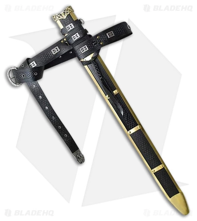 This officially licensed replica of HBO’s television series Game of Thrones is constructed of black leather with engraved metal detailing. The scabbard comes with a matching belt and is hand weathered.