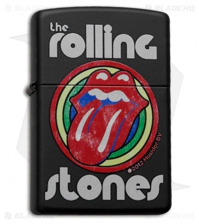 This authentic refillable Zippo lighter features a black matte finished body with the Rolling Stones logo.