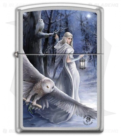 This Zippo model features a polished chrome finish and a Midnight Messenger graphic.