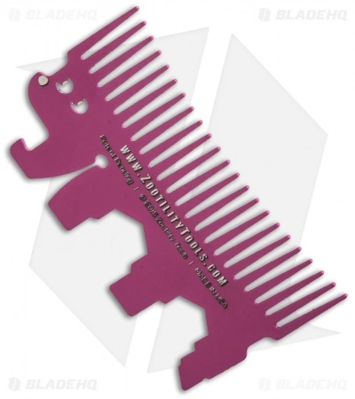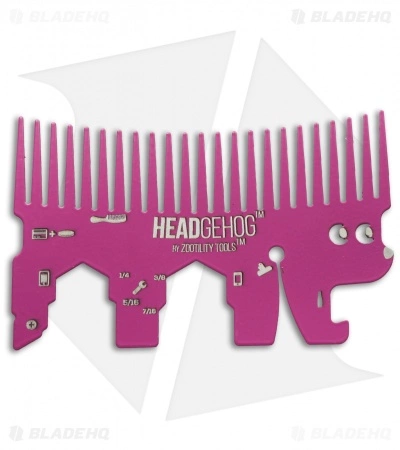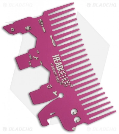 The magenta Headgehog Wallet Comb is a compact multi-tool that features 7 functions. It is specially crafted from stainless steel that has been heat treated to 4 times the normal strength. This makes the comb thin enough to slide in your wallet and strong enough to be put to serious use.